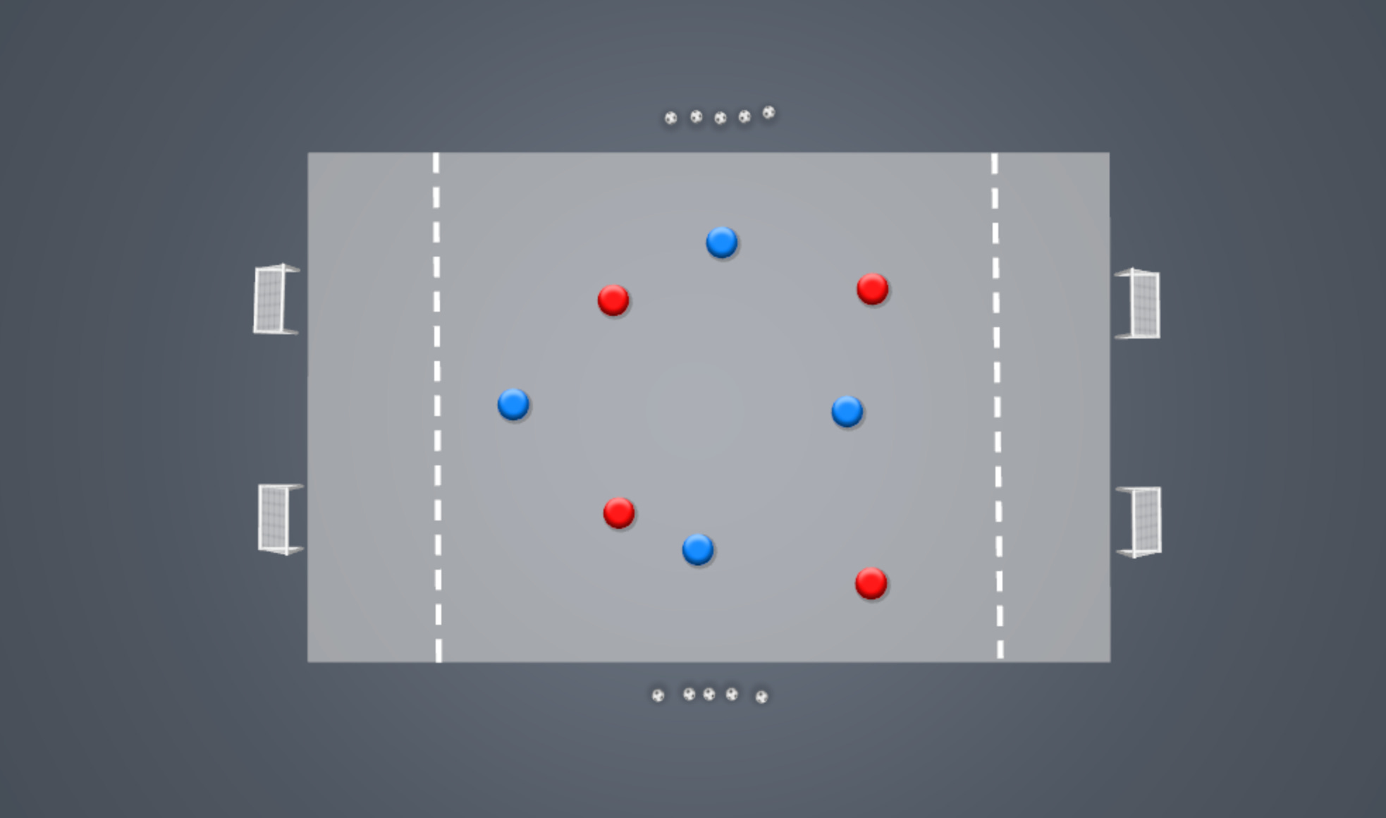 2 small goals facing outward on either end.