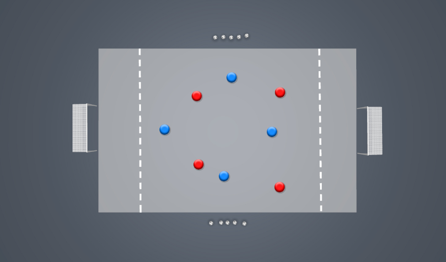 A 4v4 small game with a focus on finding passing angles and passing detail.
